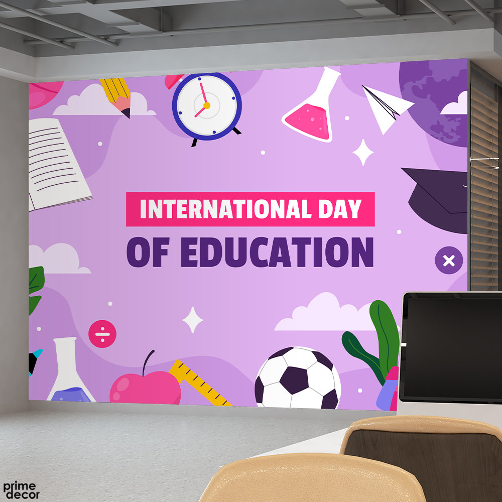 International Day Of Education Typography With Purple Background | Office Wallpaper Mural