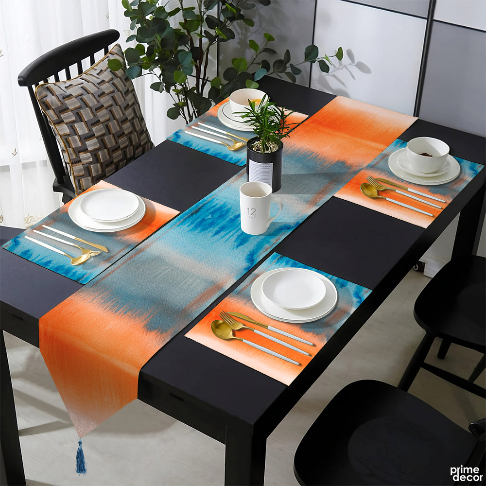 Ivy Blue & Orange Storm Watercolor Style | Table Runner and Placemat Set