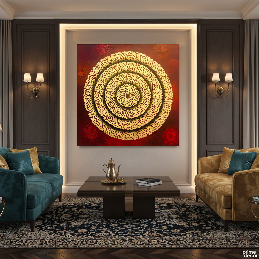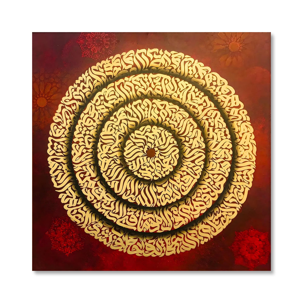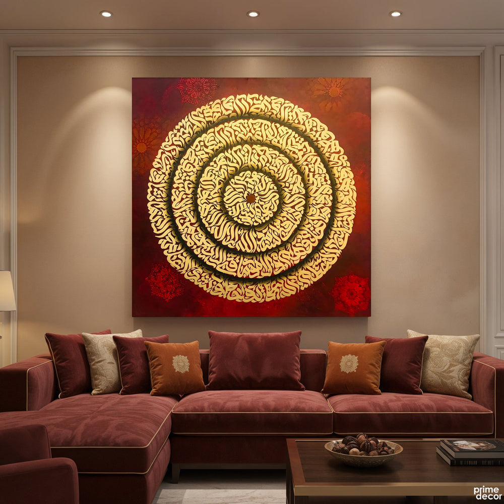Maroon Ayatul Kursi Gold Leaf Original Painting Acrylic Wall Art | Handmade Painting