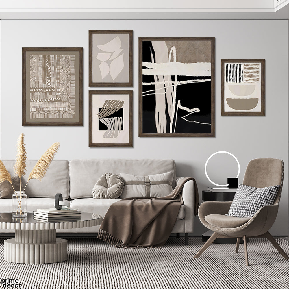 Modern Minimalist Black & Brown Strokes (5 Panel) Abstract Wall Art