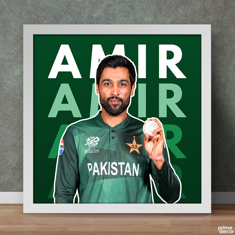 Muhammad Amir Pakistan Cricket Team with Typography Background | Sports Poster Wall Art
