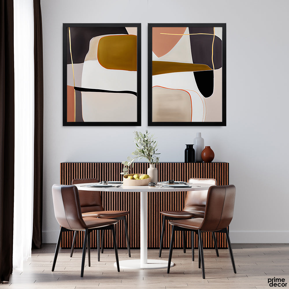 Mustard & Charcoal Abstract Color Block (2 Panel) Modern Wall Art