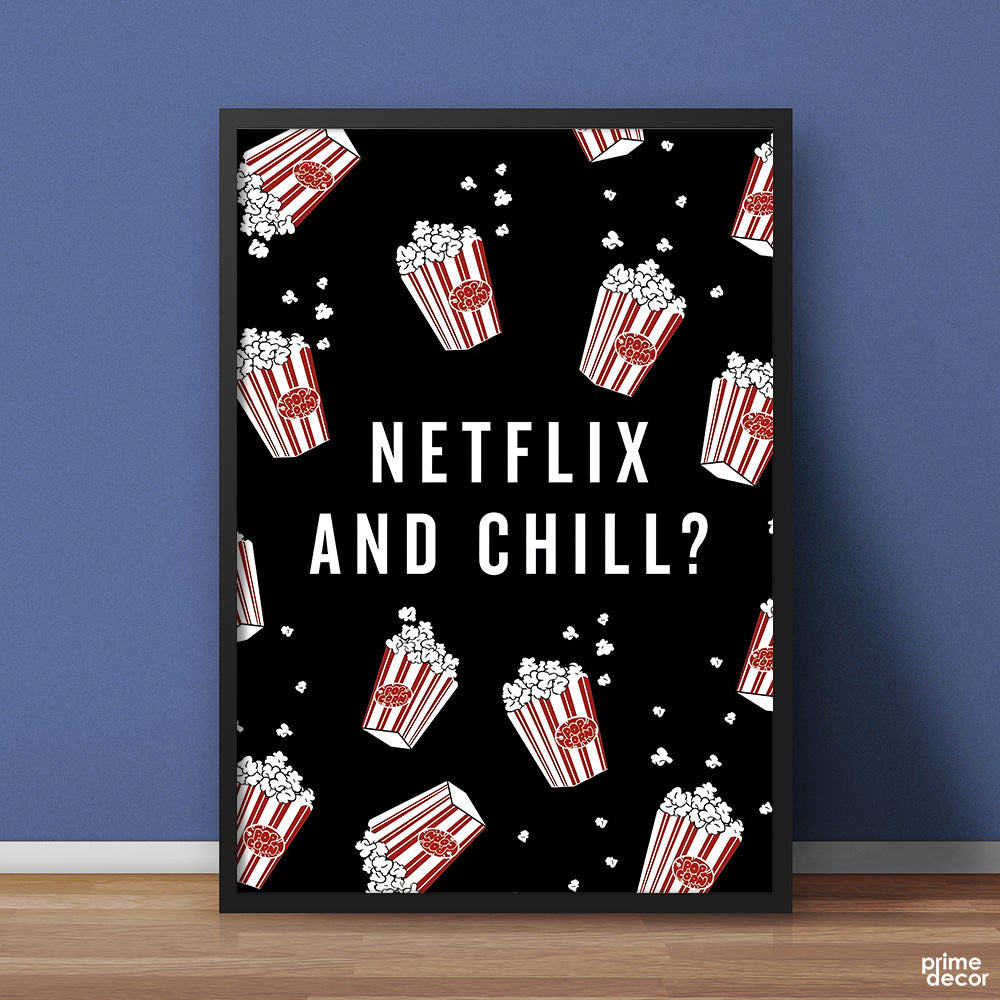 Netflix & Chill With Popcorns Floating | Movies Wall Art