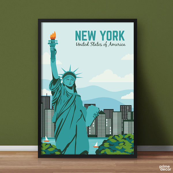 New York USA Statue Of Liberty Minimal Illustration | Travel Poster Wall Art