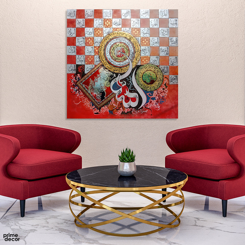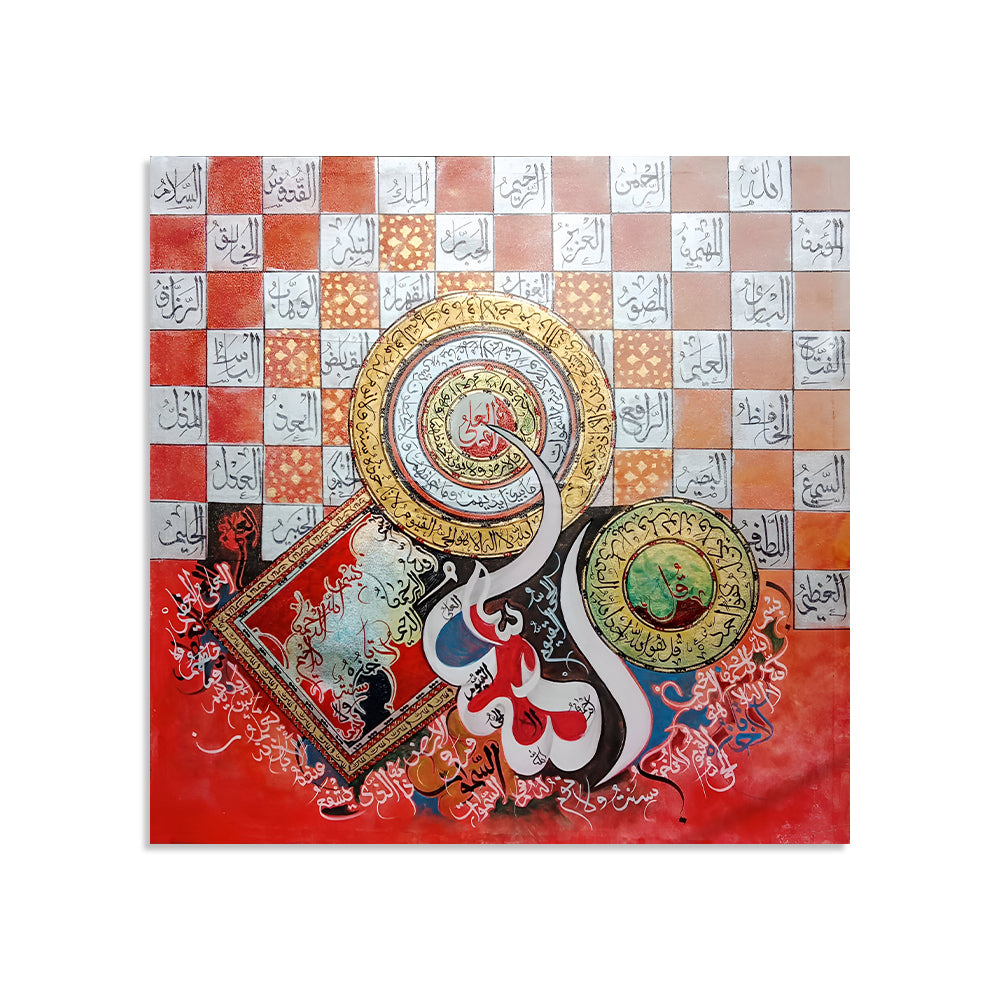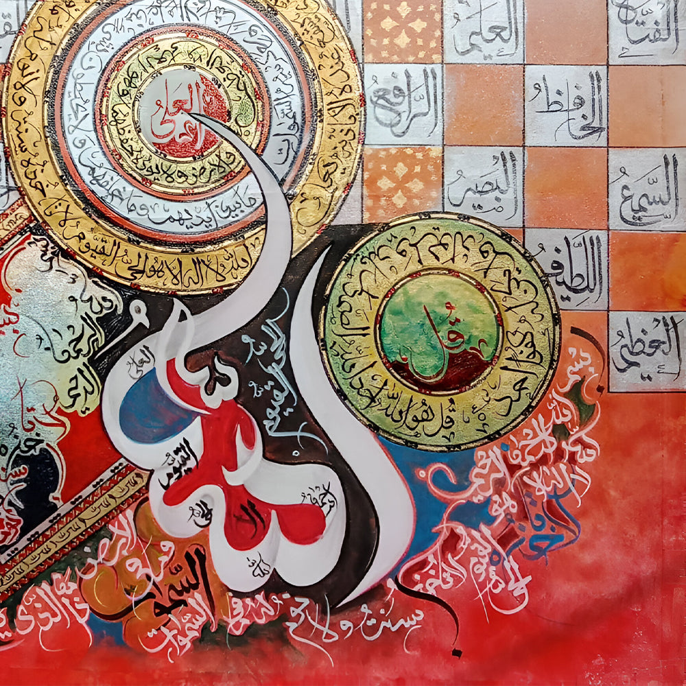 Quls, 99 Names of Allah & Ayatul Qursi Calligraphy With Gold Foiling | Handmade Painting