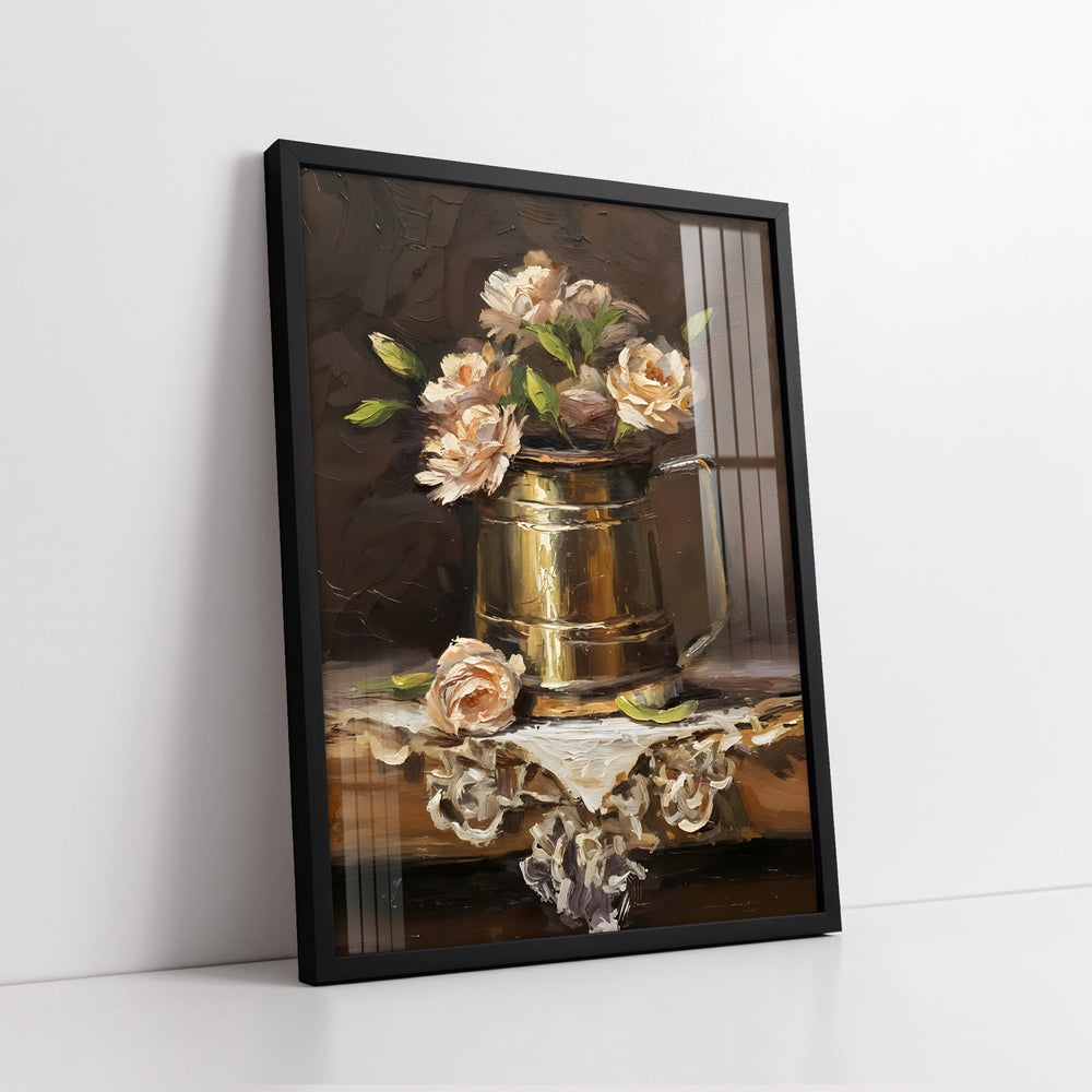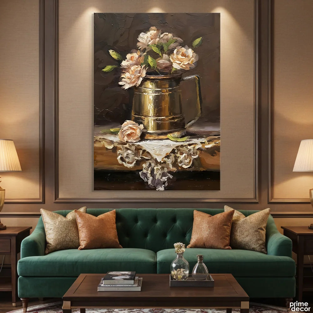 Still Life Peonies in Golden Brass Pitcher Impressionist Style (Single Panel) Digital Painting Wall Art