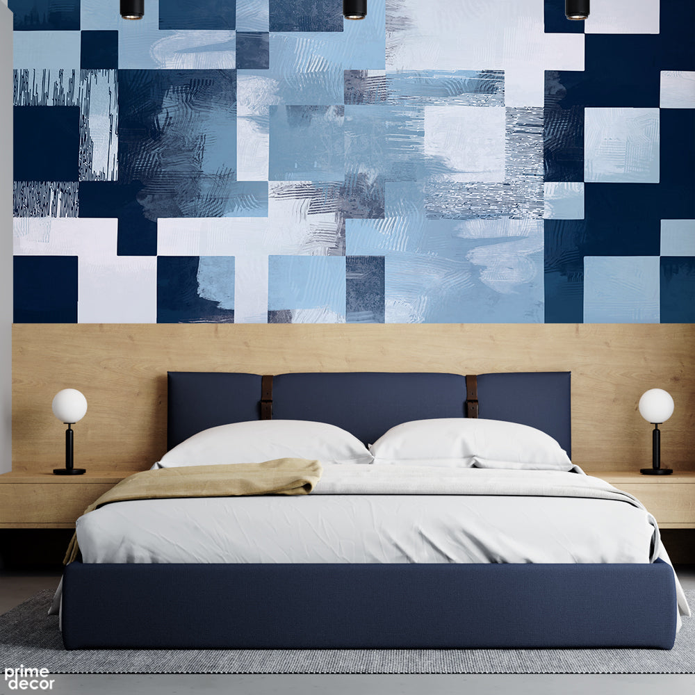 Textured Navy & Light Blue Geometric Squares | Modern Abstract Wallpaper Mural